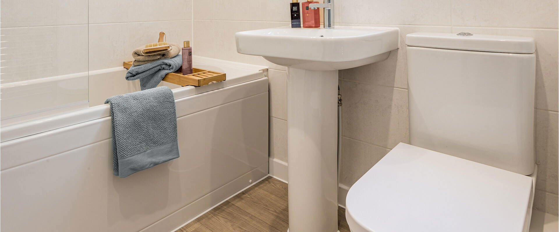 Porcelanosa splashback tiles to bathroom basin (and cloakroom basin to houses only)
